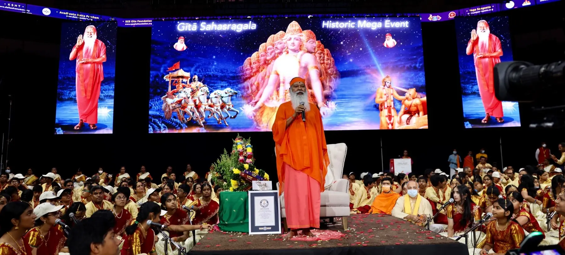 Gītā Sahasragala set a Guinness World Record. The largest simultaneous Hindu text recital consists of 1,329 participants.